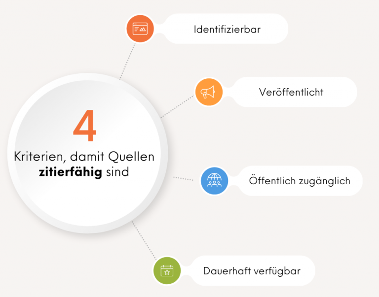 Nur wenn eine Quelle diese Kriterien erfüllt, gilt sie als zitierfähig – doch Achtung: Zitierfähig bedeutet nicht automatisch, dass sie auch zitierwürdig ist! Eine wissenschaftliche Quelle muss zusätzlich wissenschaftlichen Qualitätsansprüchen genügen.